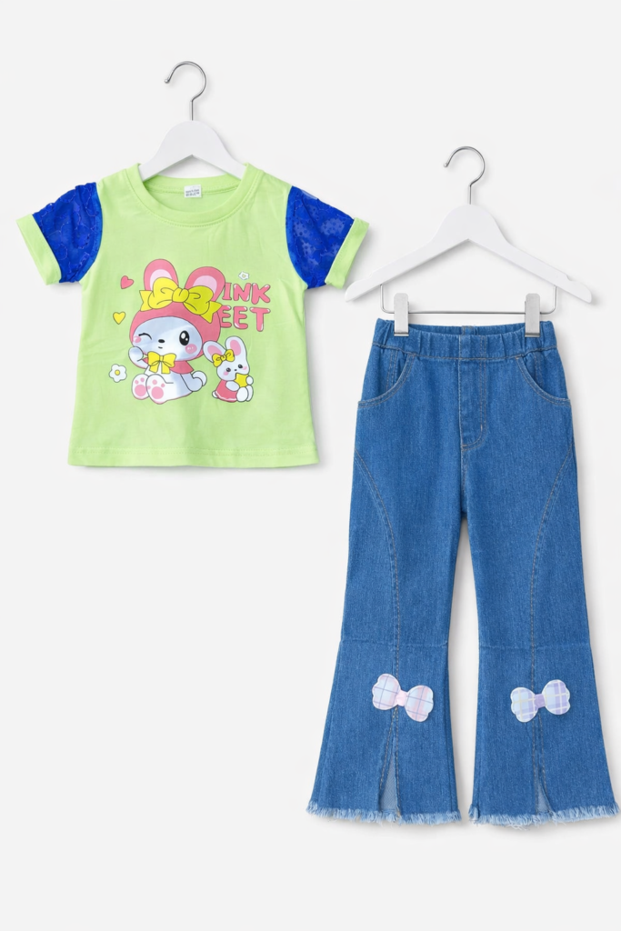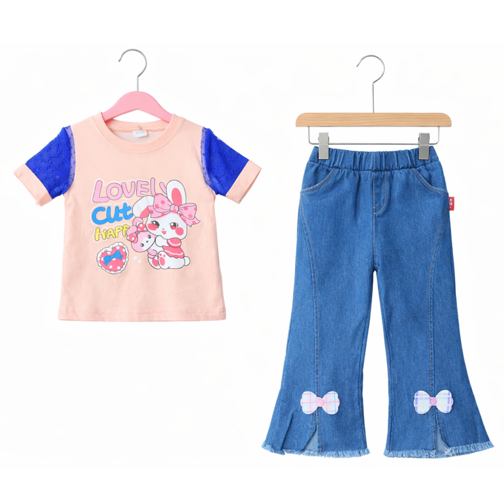 Denim Bell Bottom Shirt Cute Bunny Outfit