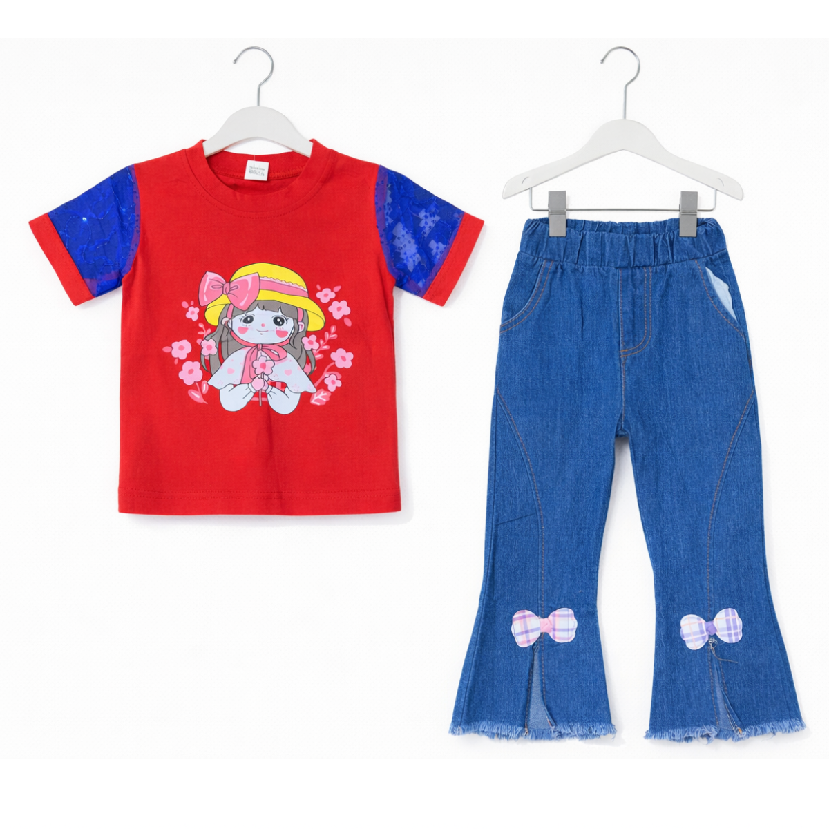 Be the first to review “Denim Bell Bottom Shirt Girl with Hat Outfit” Cancel reply